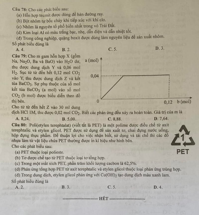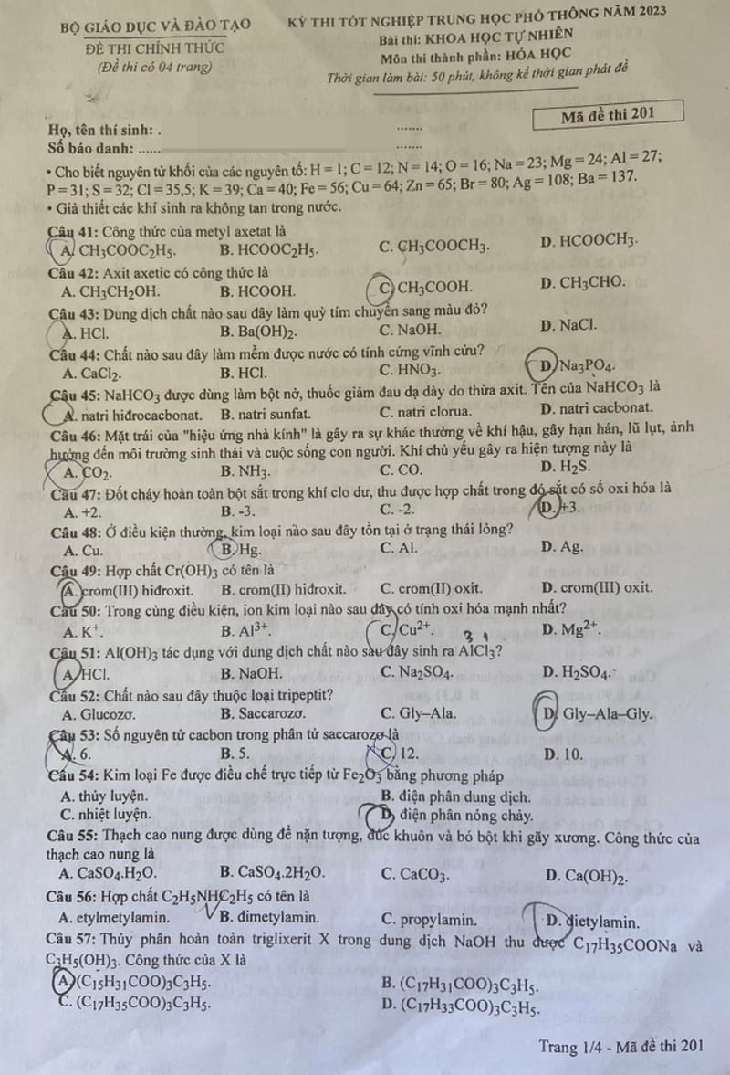 > Đề thi môn Hóa học - kỳ thi tốt nghiệp THPT 2023