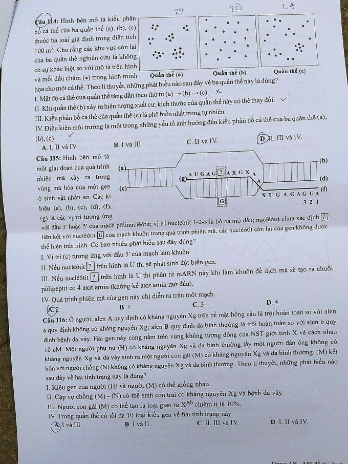 > Gợi ý đáp án môn Sinh học - kỳ thi tốt nghiệp THPT 2023