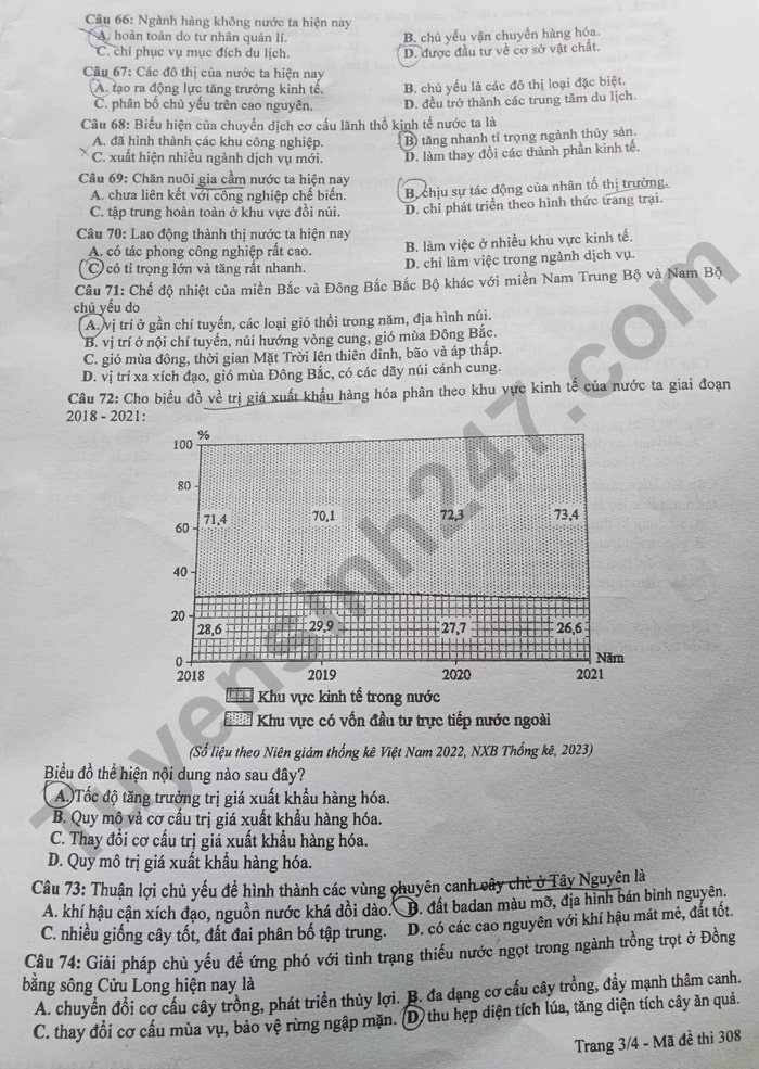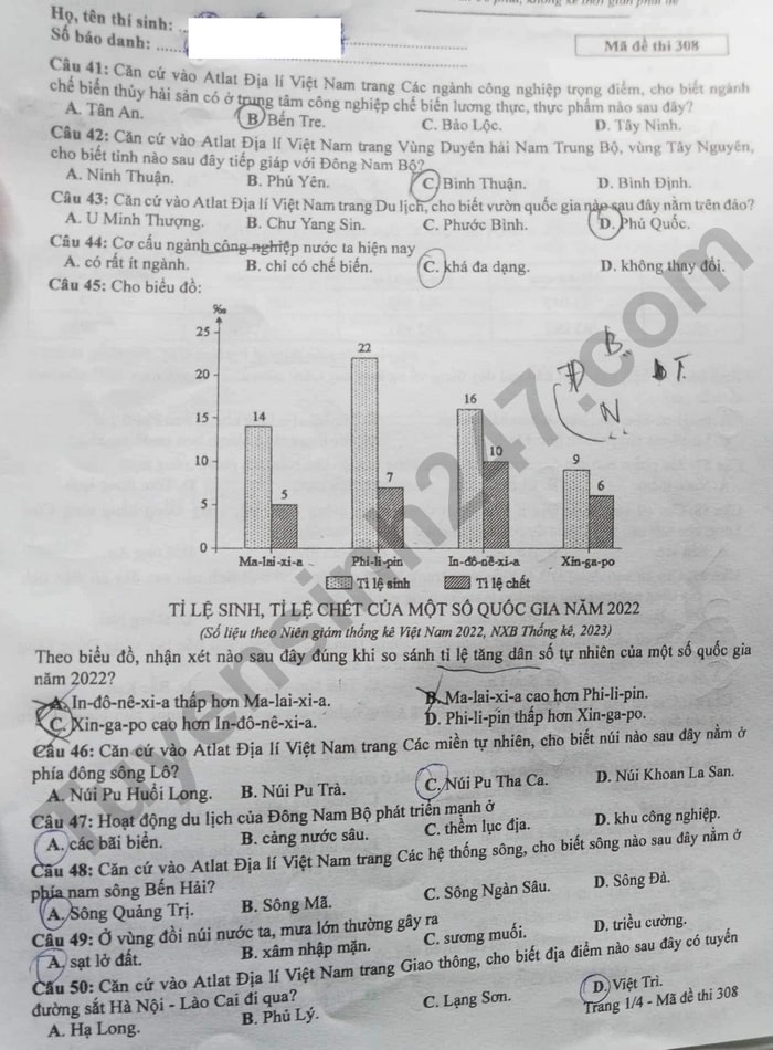 > Đề thi môn Địa lý - kỳ thi tốt nghiệp THPT 2024