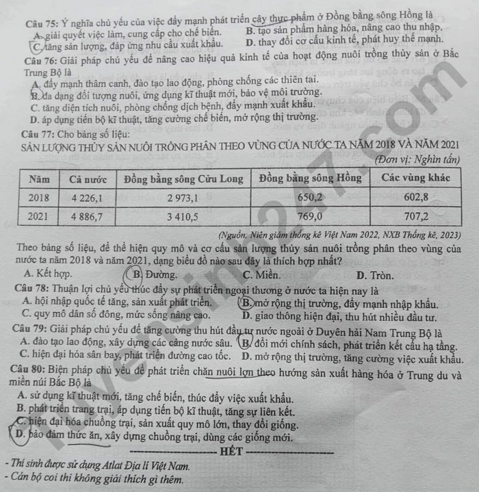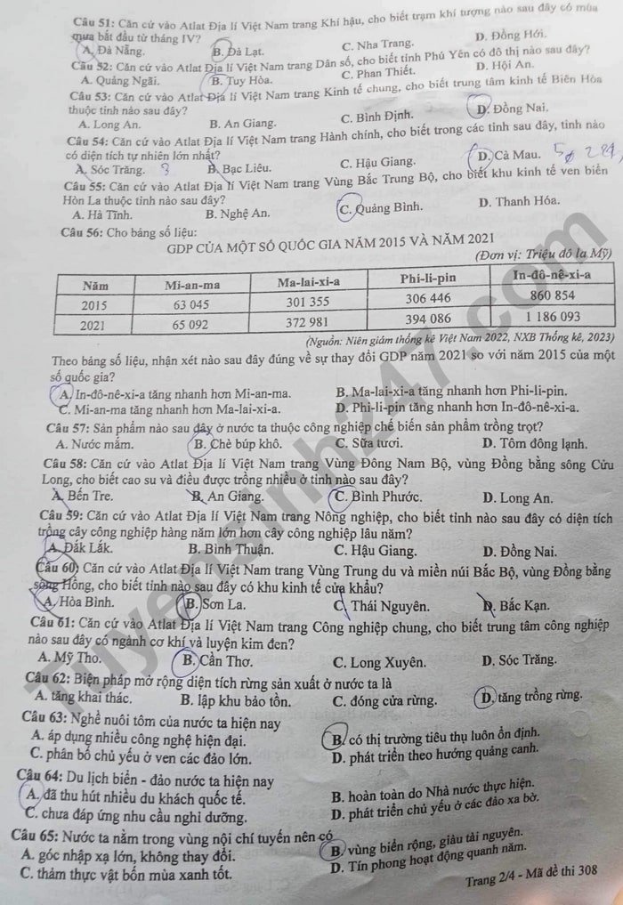 > Gợi ý đáp án môn Địa lý - kỳ thi tốt nghiệp THPT 2024