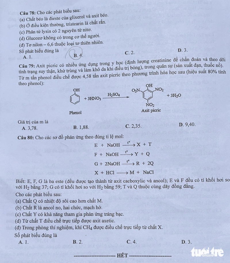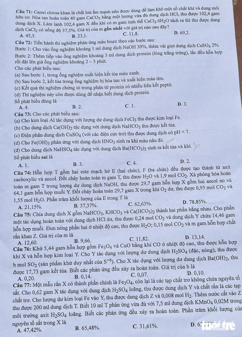 > Gợi ý đáp án môn Hóa học - kỳ thi tốt nghiệp THPT 2024
