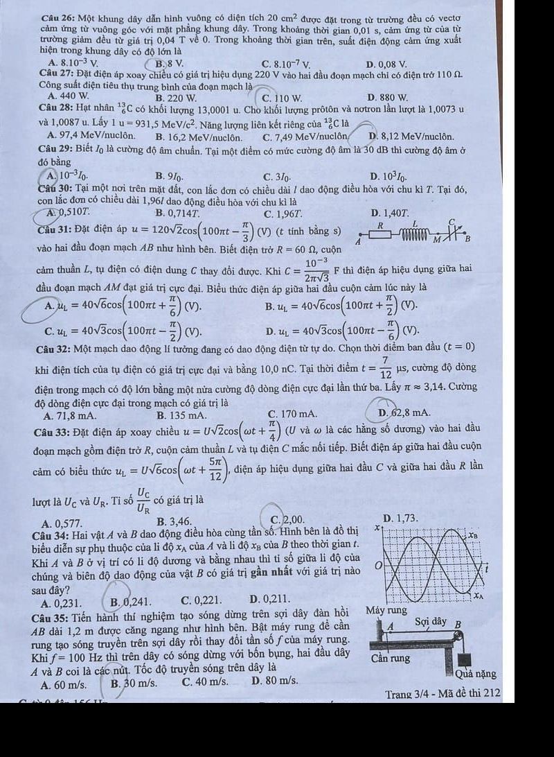 Mã đề 212 - Nguồn: Tuổi Trẻ