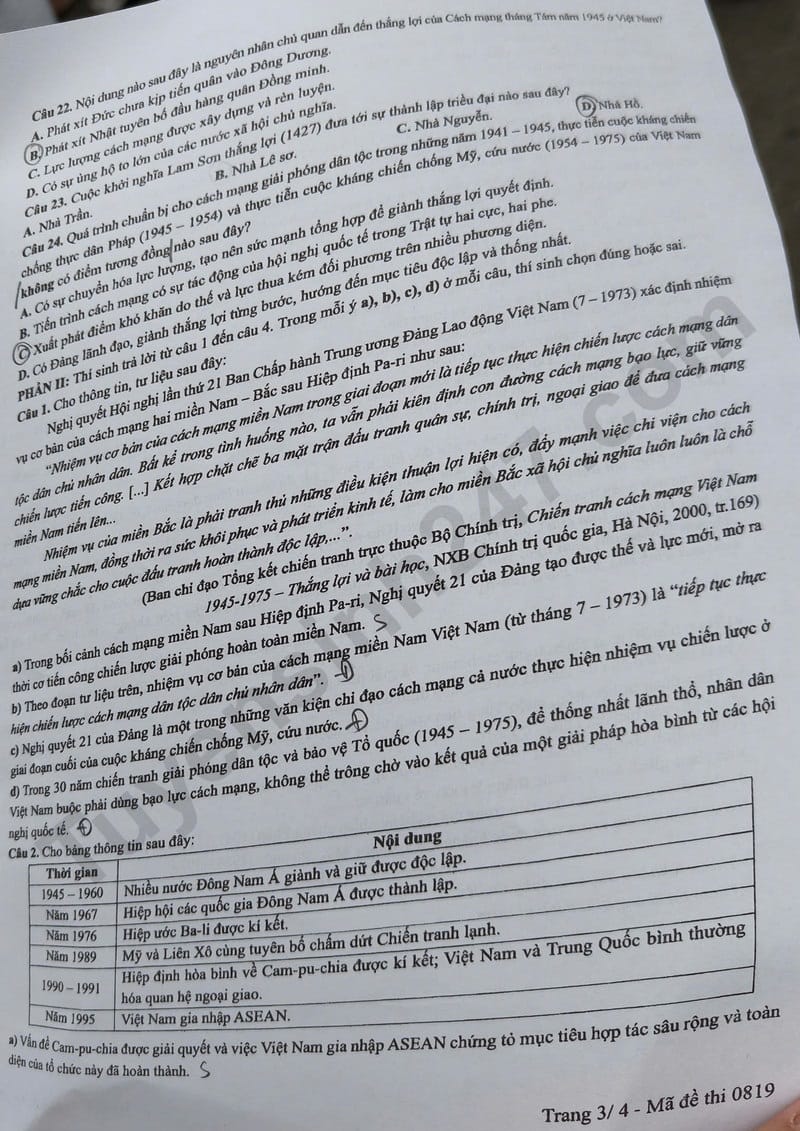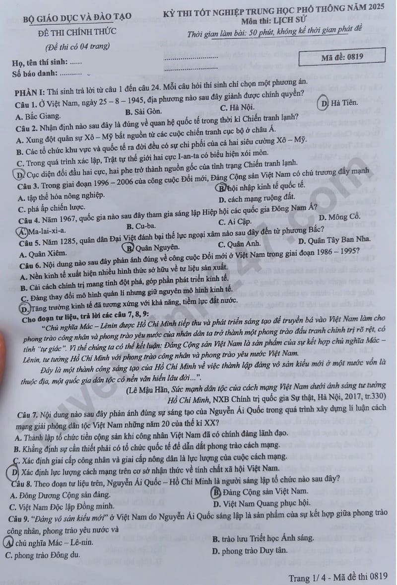 > Đề thi môn Lịch sử - kỳ thi tốt nghiệp THPT 2025
