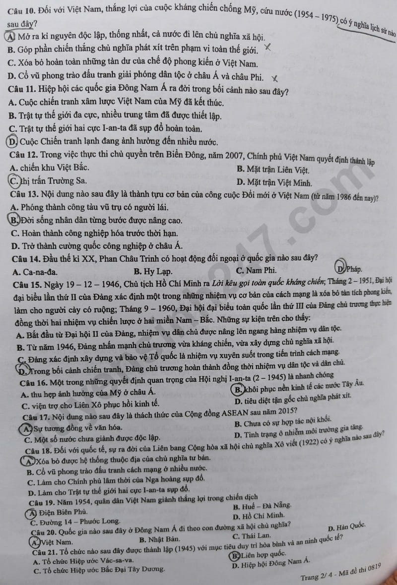 > Gợi ý đáp án môn Lịch sử - kỳ thi tốt nghiệp THPT 2025
