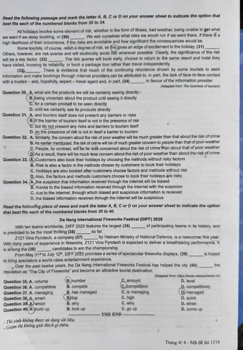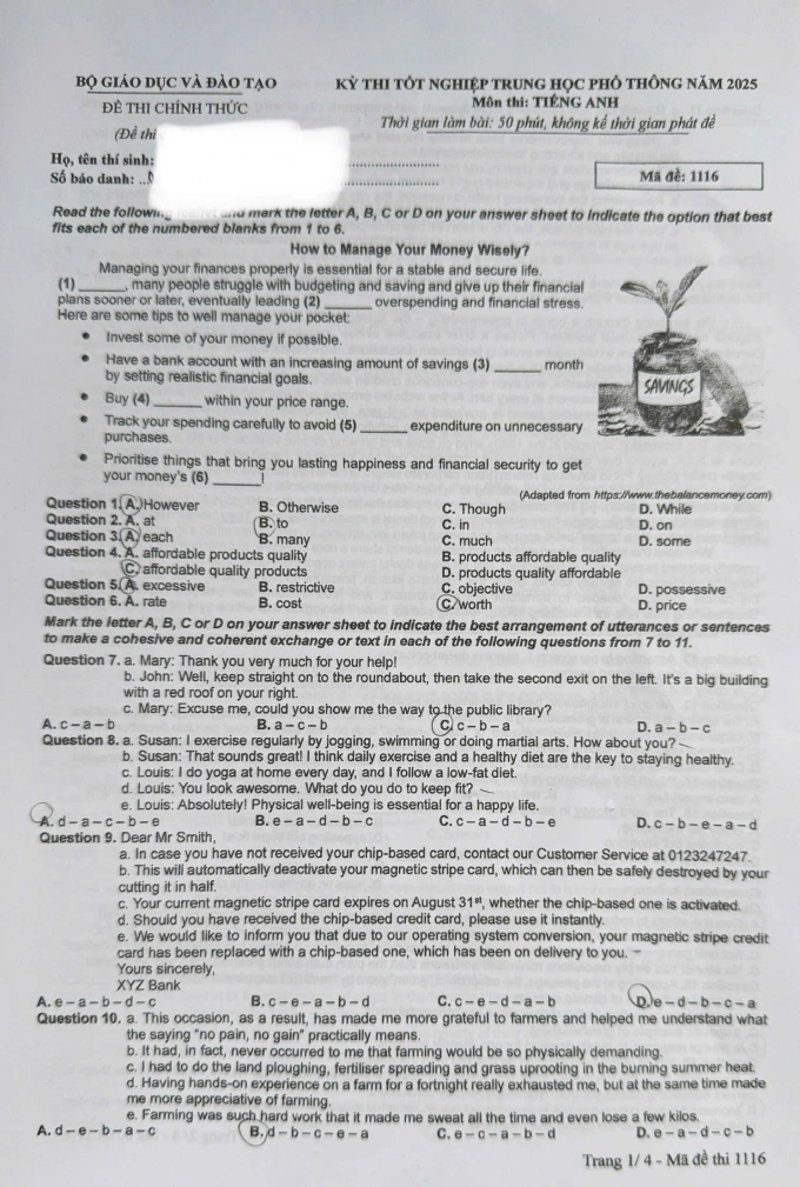 > Đề thi môn Tiếng Anh - kỳ thi tốt nghiệp THPT 2025