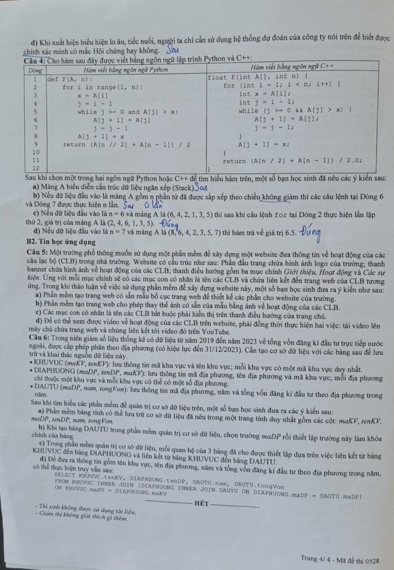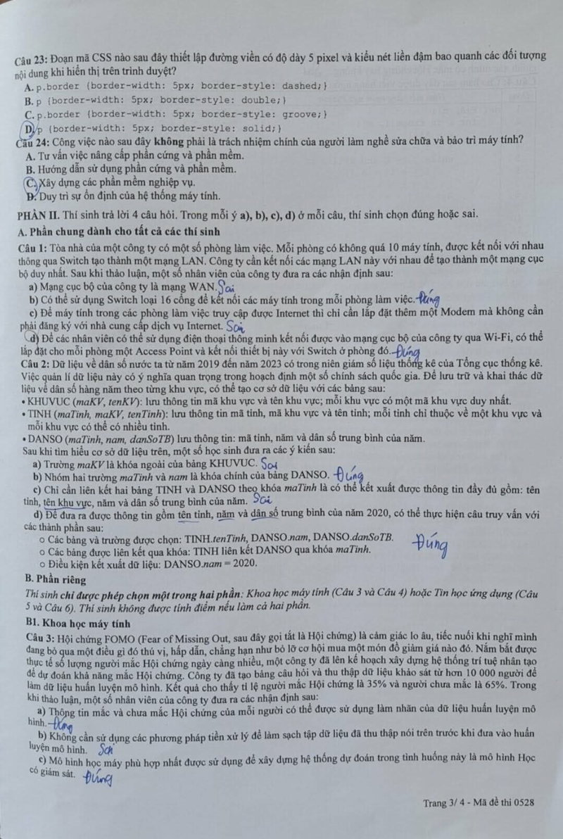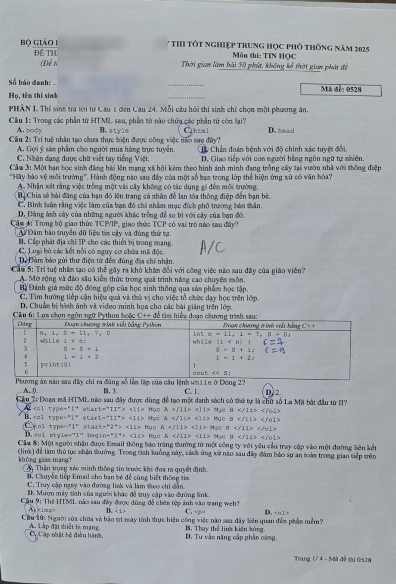 > Đề thi môn Tin học - kỳ thi tốt nghiệp THPT 2025