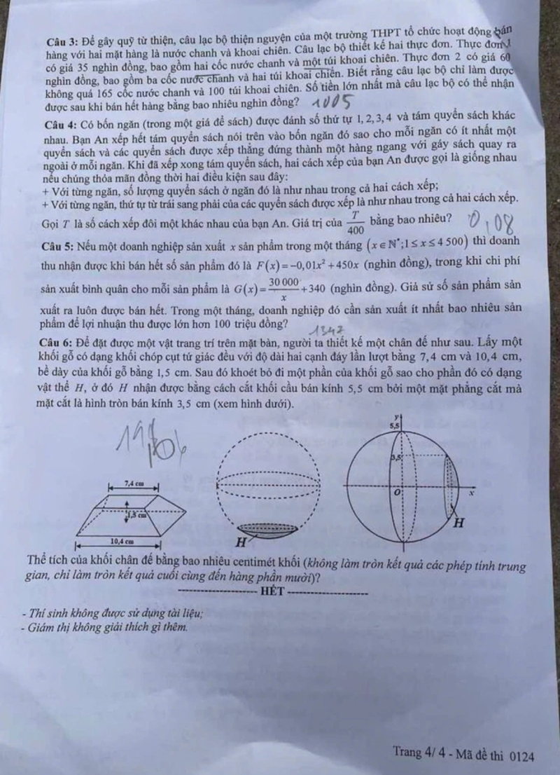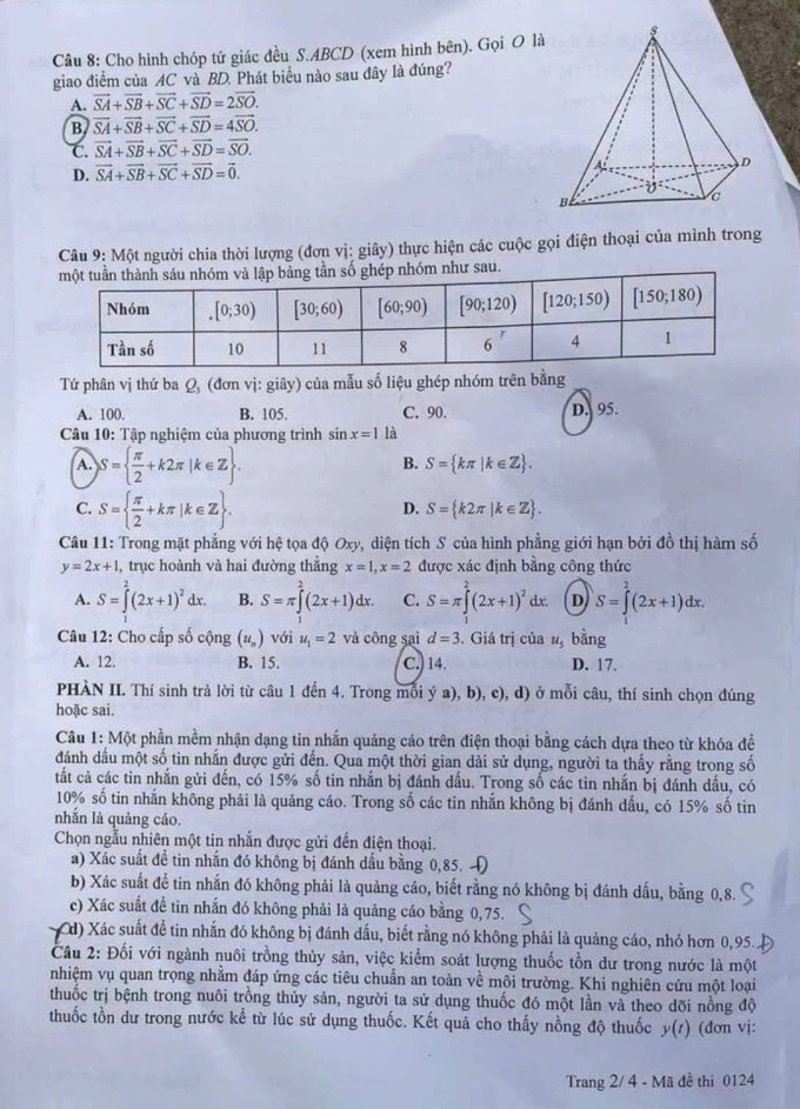 > Đáp án tham khảo môn Toán - kỳ thi tốt nghiệp THPT 2025