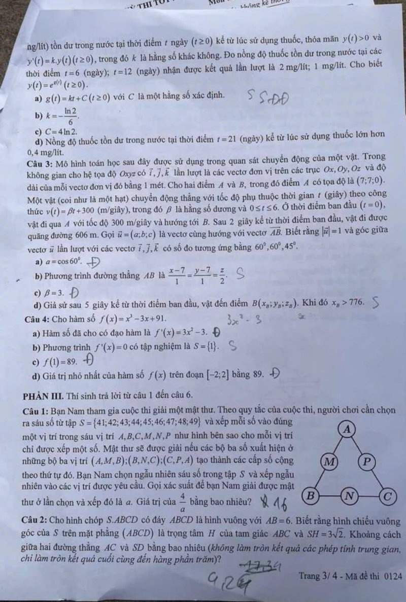 Ngoài dạng thức trắc nghiệm nhiều lựa chọn còn có dạng thức đúng/sai, dạng thức trả lời ngắn, đề thi sẽ được sắp xếp theo mức độ từ dễ đến khó. Nhưng theo các thầy cô dạy toán, thí sinh nên đọc lướt toàn bộ đề thi và câu nào chắc chắn nên làm trước, không dừng quá lâu khi gặp câu khó mà để lại làm sau.