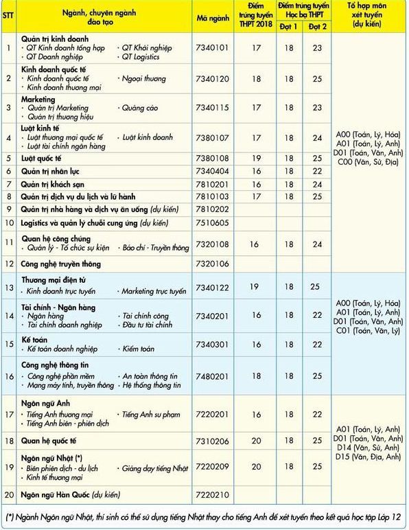 Thí sinh có thể tham khảo mức điểm xét tuyển đại học của UEF năm 2018
