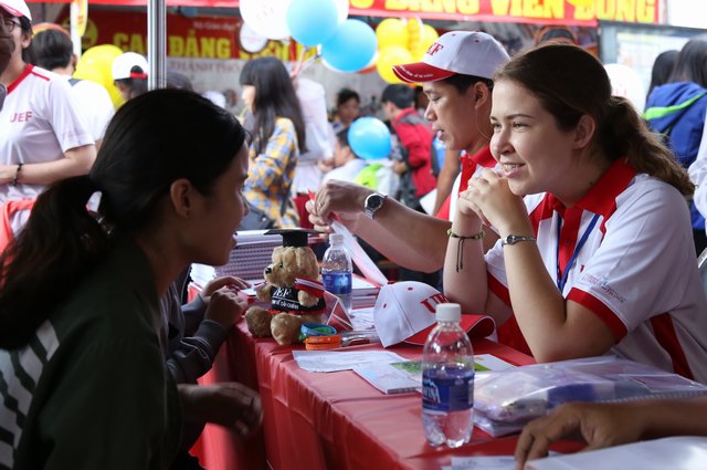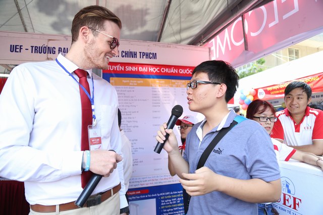 Đội ngũ cán bộ tư vấn tuyển sinh cùng các bạn sinh viên UEF với sự nhiệt tình đã tạo được ấn tượng mạnh mẽ về một trường đại học chuẩn quốc tế hiện đại, thân thiện trong mắt thí sinh và phụ huynh.