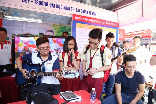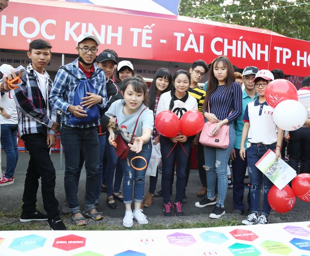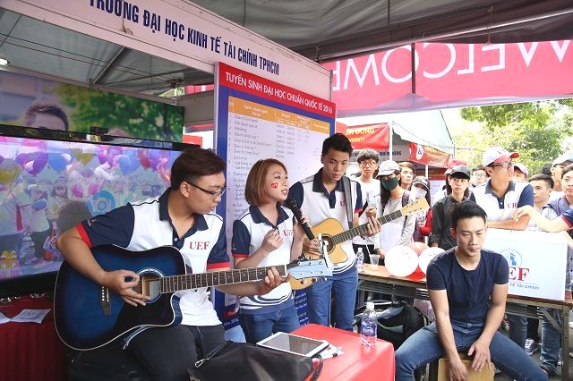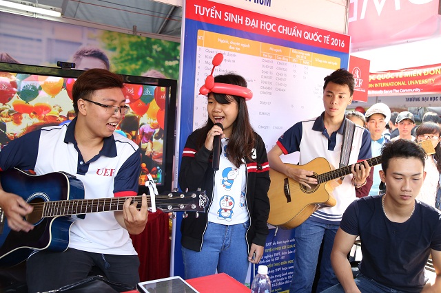 Bên cạnh những thông tin hướng nghiệp, tuyển sinh kịp thời, hữu ích được cung cấp đến thí sinh và phụ huynh, gian hàng của UEF cũng sôi động hơn với các gameshow, hoạt động nhảy hiện đại, Flash mob, giao lưu văn nghệ, biểu diễn võ thuật độc đáo, hấp dẫn...của các câu lạc bộ sinh viên UEF.