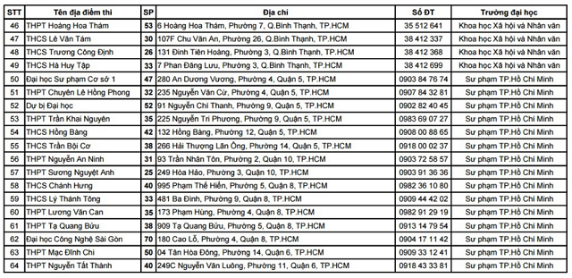 Danh sách 64 điểm thi THPT quốc gia tại TP Hồ Chí Minh năm 2016