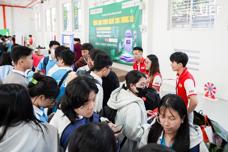 Nhằm đồng hành với học sinh trên hành trình lựa chọn ngành nghề phù hợp trong thời đại chuyển đổi số, sáng ngày 15/11 vừa qua, UEF tiếp nối chương trình hướng nghiệp “Gen Z chọn ngành trong kỷ nguyên AI” tại Trường THPT Võ Trường Toản. Chương trình mang đến cho các bạn học sinh lớp 12 bức tranh rõ nét hơn về xu hướng nghề nghiệp trong kỷ nguyên AI, từ đó tự tin hiểu rõ ngành nghề và có lộ trình học tập phù hợp với bối cảnh chuyển đổi số hiện nay.