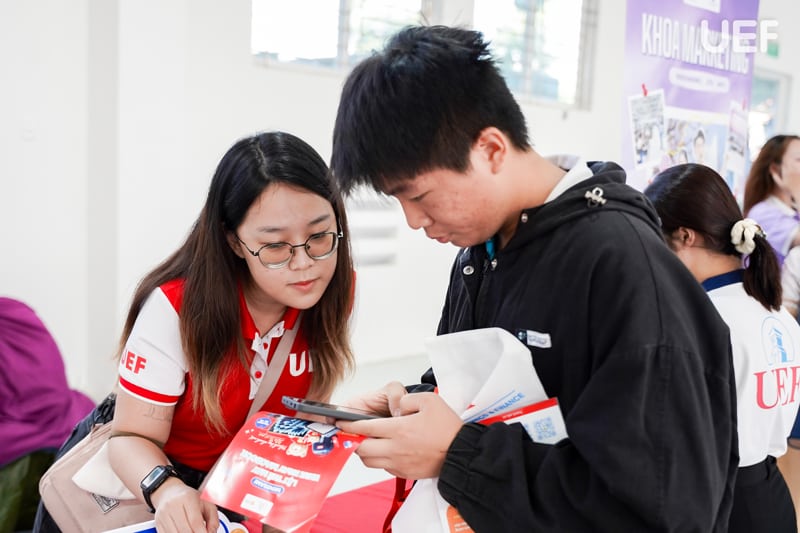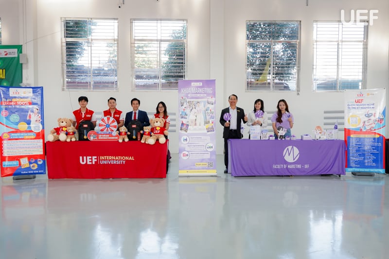 Gian tư vấn của UEF thu hút đông đảo học sinh đến quan tâm. Tại đây, ngoài những mini game hấp dẫn kèm quà tặng độc quyền, các bạn 2k8 còn có cơ hội được trực tiếp gặp gỡ và nhận tư vấn chi tiết từ các chuyên gia UEF về lộ trình học tập phù hợp với năng lực và ngành học mong muốn. Bên cạnh đó, học sinh còn được cập nhật thêm thông tin về chương trình đào tạo, các chính sách tuyển sinh sớm và nhiều học bổng giá trị trong năm 2026, tạo cơ hội giúp các bạn được tiếp cận môi trường học tập năng động, chuẩn quốc tế với nhiều ưu đãi hấp dẫn.