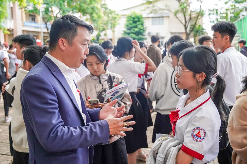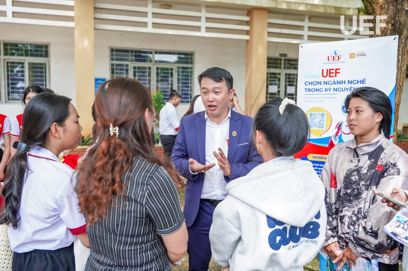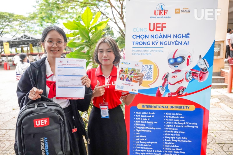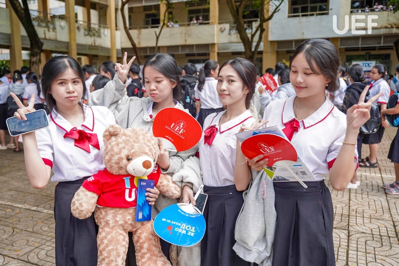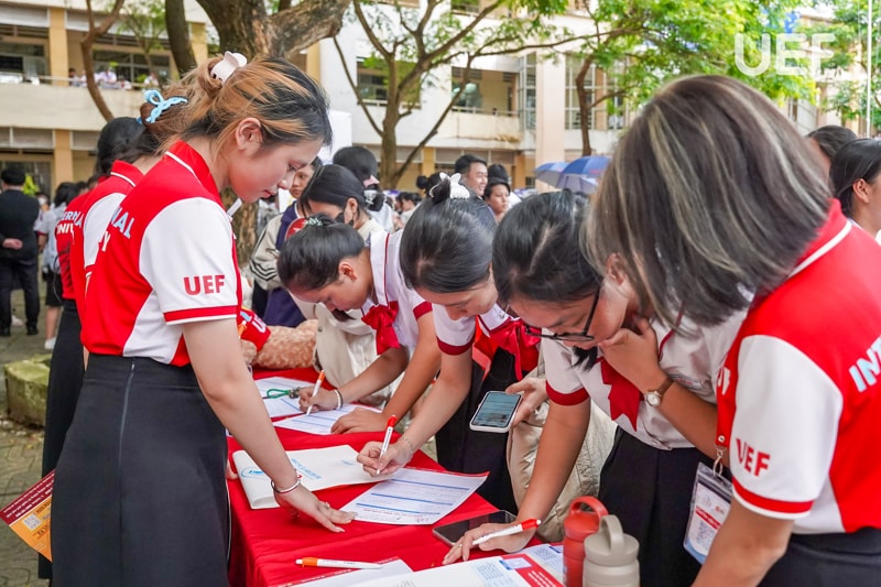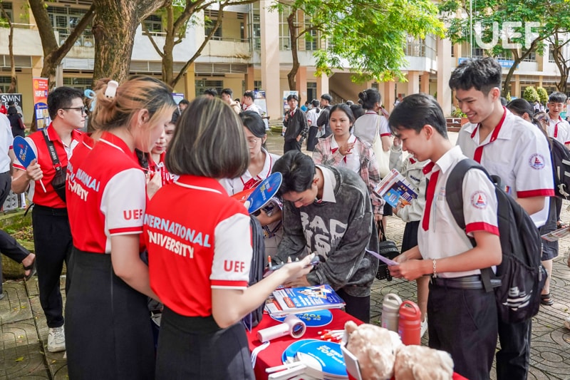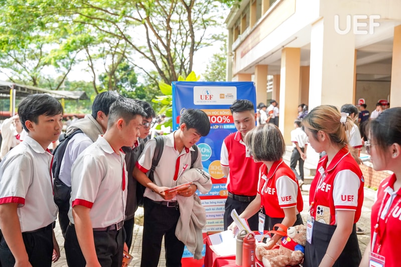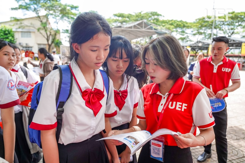 Tại gian tư vấn của UEF, đông đảo học sinh, đặc biệt là các bạn lớp 12, đã đến tìm hiểu về các ngành học, chương trình đào tạo song ngữ, môi trường học tập quốc tế và cơ hội giao lưu, thực tập tại doanh nghiệp. Đội ngũ tư vấn viên của UEF đã tận tình giải đáp thắc mắc, giúp các bạn có cái nhìn rõ nét hơn về định hướng nghề nghiệp, qua đó lựa chọn được ngành học phù hợp với năng lực và đam mê.