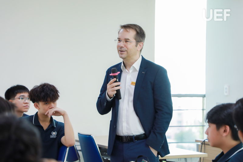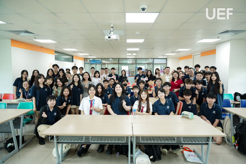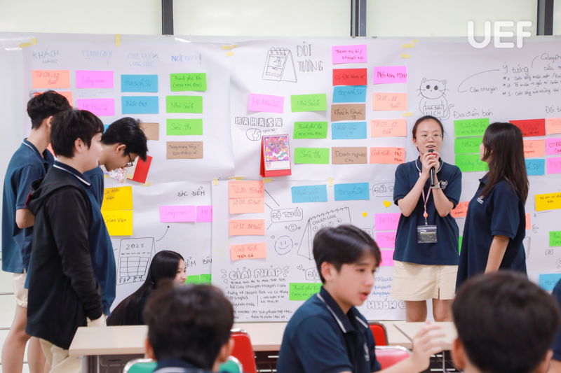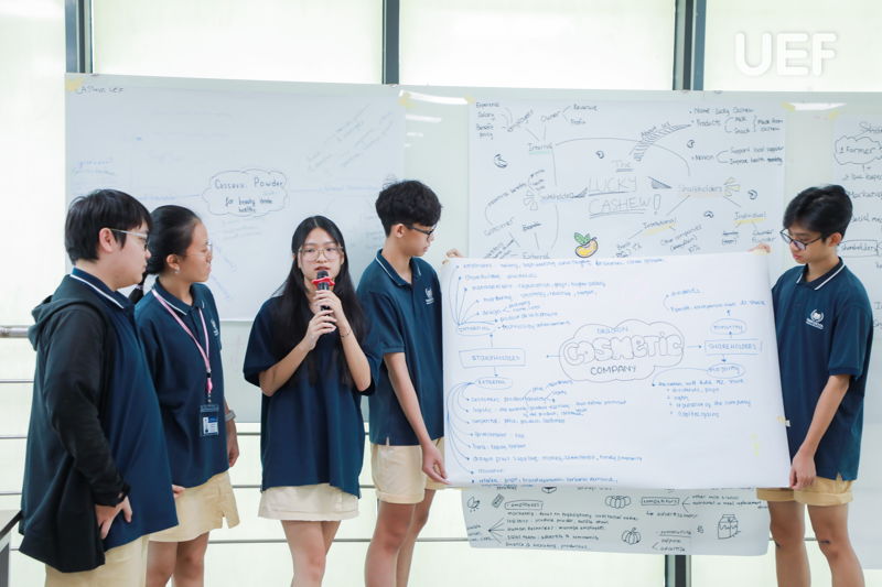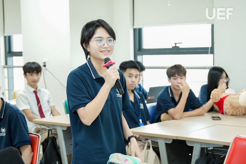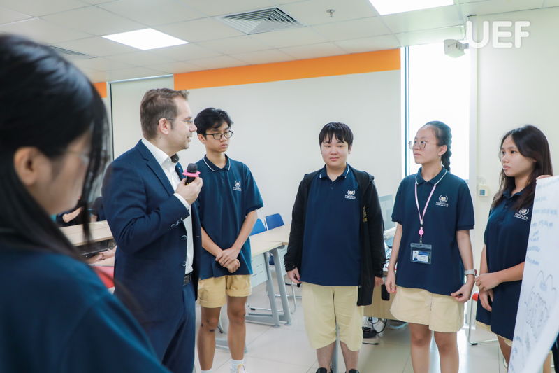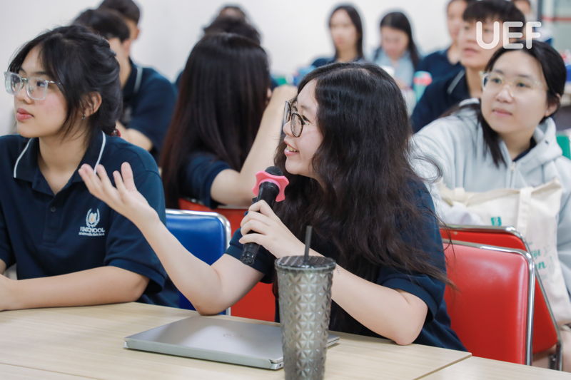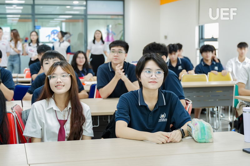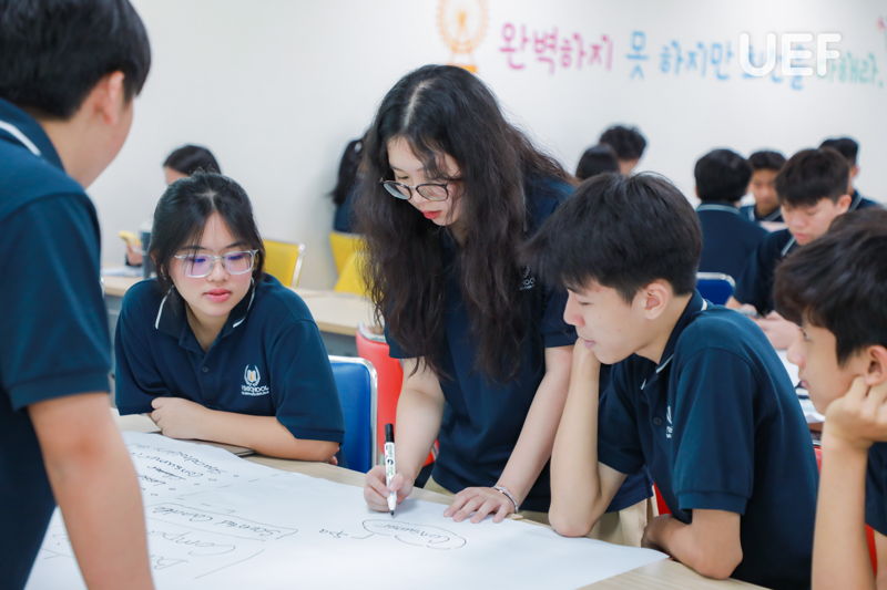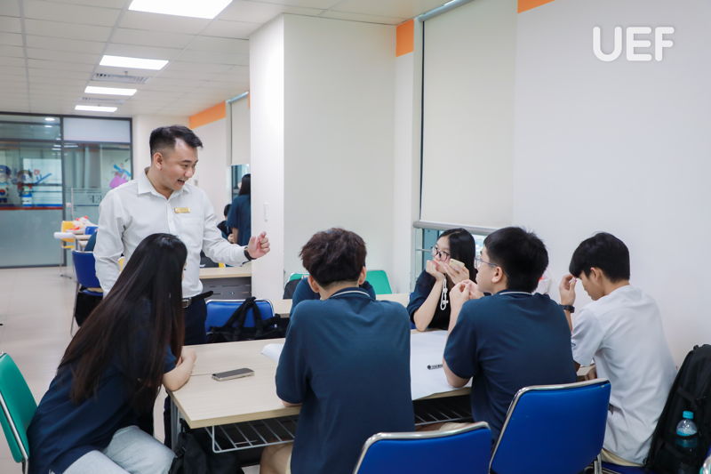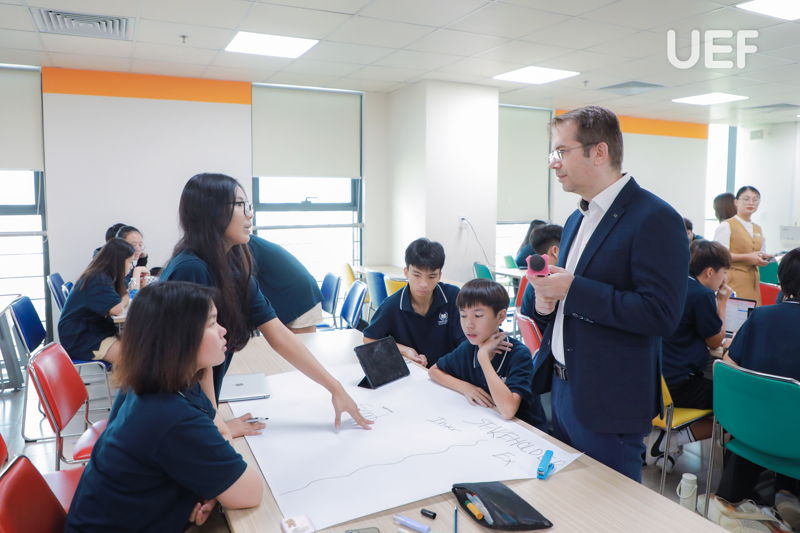 Học sinh Vinschool thoải mái thảo luận, trao đổi bài học với giảng viên UEF