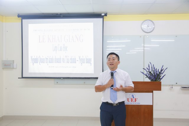 Tại Lễ khai giảng, PGS.TS.Ngô Cao Cường – Phó Hiệu trưởng Nhà trường đã đánh giá cao sự nỗ lực của các học viên trong kỳ thi tuyển sinh vừa qua và vui mừng chào đón các anh chị học viên chính thức bước vào quá trình chinh phục nấc thang tri thức mới tại UEF. Lãnh đạo Nhà trường cũng mong muốn các phòng, ban chức năng cùng các giảng viên đào tạo sau đại học sẽ tạo điều kiện thuận lợi cho tất cả các học viên trong suốt quá trình học tập, nghiên cứu tại trường.