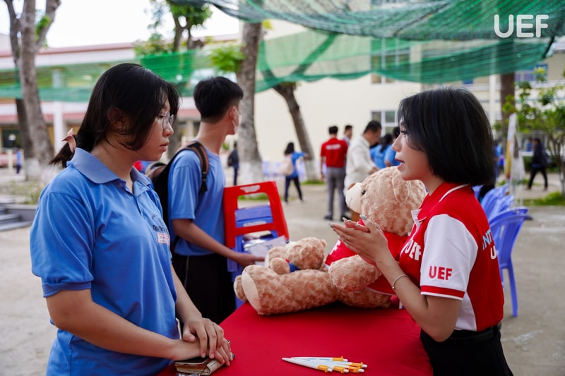 Gian tư vấn của UEF còn thu hút đông đảo học sinh tìm đến để được giải đáp thắc mắc về ngành học, chương trình đào tạo quốc tế, chính sách đăng ký học bổng sớm với học bạ lớp 11 và cơ hội nghề nghiệp trong tương lai. Nhiều bạn trẻ tỏ ra thích thú khi được tư vấn cặn kẽ về việc lựa chọn ngành nghề phù hợp với năng lực và sở thích. Từ đó, các bạn có thêm động lực để hoạch định lộ trình học tập và phát triển bản thân trong môi trường đại học năng động, sáng tạo mà UEF đang xây dựng.