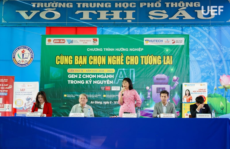 Đồng hành với chương trình “Cùng bạn chọn nghề cho tương lai - Gen Z chọn ngành trong kỷ nguyên AI", UEF không chỉ mang đến những thông tin hữu ích về định hướng ngành nghề mà còn truyền cảm hứng cho học sinh nhìn thấy chính mình trong bức tranh tương lai của kỷ nguyên số. Thông qua những chia sẻ sâu sát, sự xuất hiện đầy thân thiện của Mascot Robot AI UEF, cùng tinh thần kết nối xuyên suốt chương trình, UEF đã góp phần giúp các bạn học sinh miền Tây nhìn nhận nghề nghiệp bằng góc nhìn mới mà công nghệ, tri thức và con người cùng song hành. Chuyến dừng chân tại An Giang mới chỉ là khởi đầu trong hành trình hướng nghiệp của UEF tại các tỉnh miền Tây. Trường sẽ tiếp tục mang đến những chương trình ý nghĩa, tạo cơ hội để học sinh trải nghiệm, khám phá và nuôi dưỡng ước mơ nghề nghiệp của mình, 2k8 Tây Nam Bộ hãy cùng chờ đón UEF nhé.