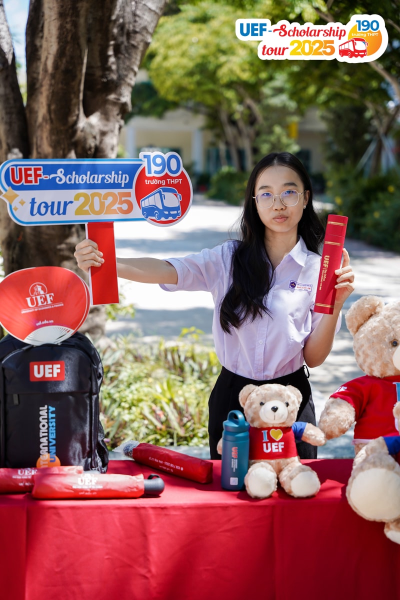 Là học sinh nhận suất học bổng cao nhất trong chương trình, bạn Nguyễn An Nhiên (12A6), Trường THPT Nguyễn Trung Trực chia sẻ: “Em rất bất ngờ và vui khi nhận được suất học bổng cao như vậy. Về tài chính, học bổng giúp gia đình em giảm bớt gánh nặng. Về tinh thần, em thấy nhẹ nhõm hơn, có thể thoải mái đến trường cùng các bạn và tự tin theo đuổi đam mê của mình”. Với An Nhiên, UEF khả năng cao sẽ là điểm đến tương lai khi đã trở thành một trong ba lựa chọn hàng đầu cho hành trình đại học sắp tới bên cạnh các trường đại học công lập.