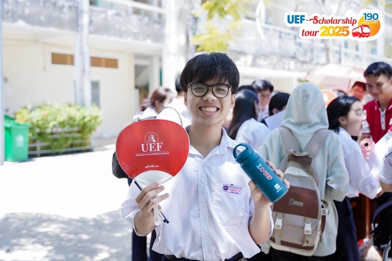 Còn với bạn Lâm Quốc Thịnh (12A6), Trường THPT Nguyễn Trung Trực việc nhận học bổng 25% ngành Tài chính quốc tế như một cú hích lớn: “Em có người anh đang học ở UEF nên đã định hướng từ đầu. Bây giờ có học bổng, em thấy an tâm hơn rất nhiều vì đã có một chỗ vững chắc rồi, không còn áp lực việc trúng tuyển đại học nữa, chỉ cần tập trung ôn thi tốt nghiệp thật tốt là được”.