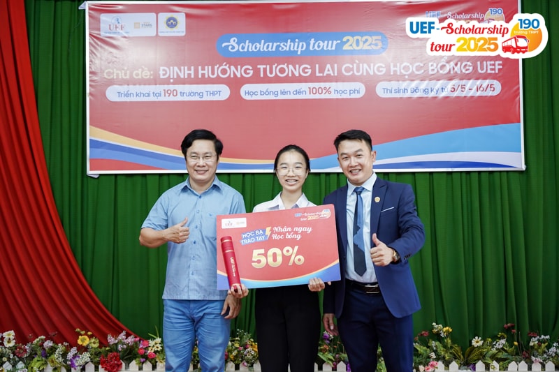 "UEF - Scholarship Tour 2025" đã dừng chân tại vùng đất Kiên Giang, mang theo không chỉ là những suất học bổng giá trị mà còn là niềm tin, động lực và khởi đầu cho những ước mơ đại học của các bạn học sinh lớp 12 các trường THPT tại đây.