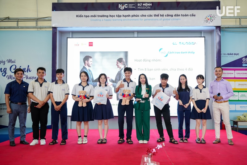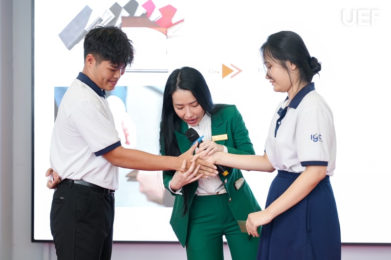 Không chỉ đơn thuần là buổi chia sẻ, các nội dung đều có tính tương tác cao, học sinh được thực hành, đặt câu hỏi, thảo luận và nhận những phần quà dễ thương từ UEF như một lời khích lệ tinh thần và kết nối gần gũi giữa nhà trường đại học với học sinh phổ thông.