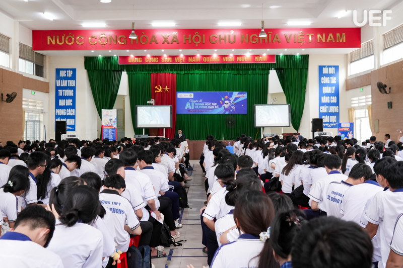 Xuất phát từ nhu cầu ấy, chiều ngày 21/11, UEF đã tổ chức buổi sinh hoạt chuyên đề “AI trong học tập và công dân số” dành cho học sinh khối 12 Trường THPT Lê Hồng Phong (Đồng Nai).