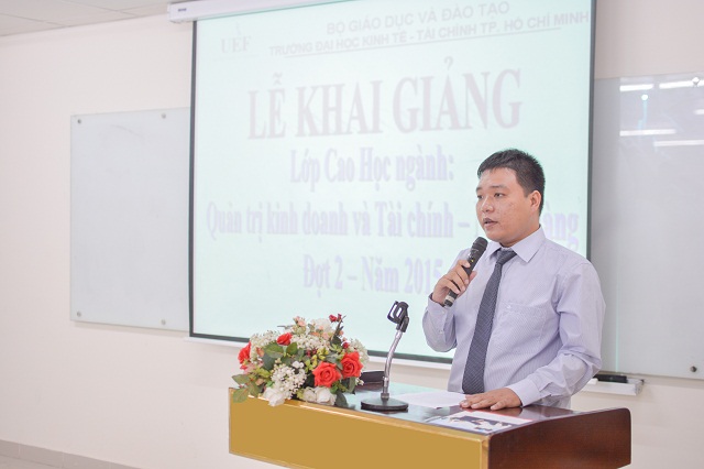 Đại diện cho các tân học viên khóa mới, học viên Nguyễn Nam Hải phát biểu bày tỏ niềm vui, niềm tự hào vì được trở thành học viên cao học ngành Quản trị kinh doanh. Đồng thời thể hiện quyết tâm phấn đấu học tập, nghiên cứu để đáp lại sự kỳ vọng của Ban giám hiệu cũng như xứng đáng với học vị thạc sĩ trong tương lai.