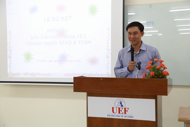 Vừa qua, Trường Đại học Kinh tế - Tài chính thành phố Hồ Chí Minh (UEF) đã tổ chức buổi sơ kết học kỳ 1 lớp Cao học ngành Quản trị kinh doanh và Tài chính Ngân hàng Khóa 15.2 với sự hiện diện của Ban giám hiệu Nhà trường; Lãnh đạo các Phòng ban, các Khoa và các giảng viên tham gia giảng dạy sau đại học.
