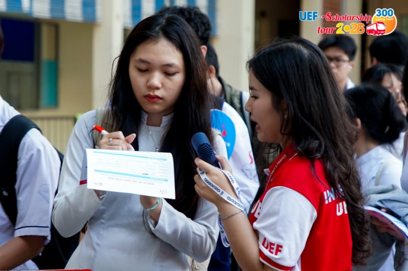 Hoạt động trao học bổng ngay tại điểm trường mang đến không khí sôi nổi, đồng thời thể hiện sự đồng hành thiết thực của UEF dành cho học sinh trong giai đoạn quan trọng trước kỳ thi tốt nghiệp THPT. Những suất học bổng được trao tận tay không chỉ là sự ghi nhận cho nỗ lực học tập mà còn tiếp thêm động lực để các bạn tự tin hơn khi bước vào chặng đường mới.