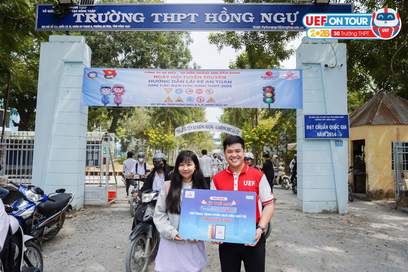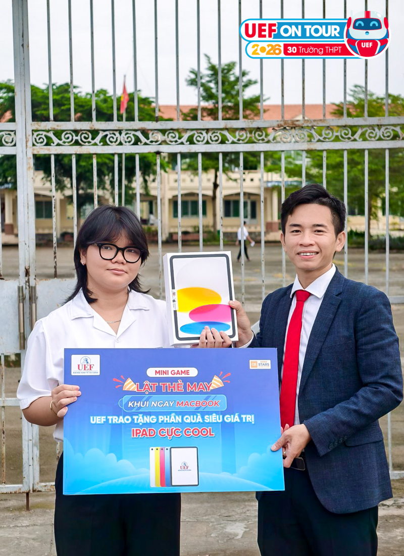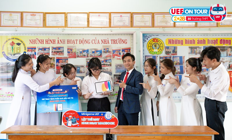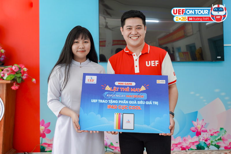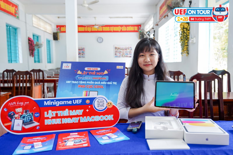 Mới đây, UEF đã trực tiếp đến trường THPT Hồng Ngự 1 (Đồng Tháp) và THPT Long Hựu Đông (Tây Ninh) để trao iPad cho hai học sinh may mắn trúng thưởng từ minigame trên MiniApp, mang đến niềm vui bất ngờ và tiếp thêm động lực trên hành trình đại học sắp tới của các bạn học sinh THPT.
