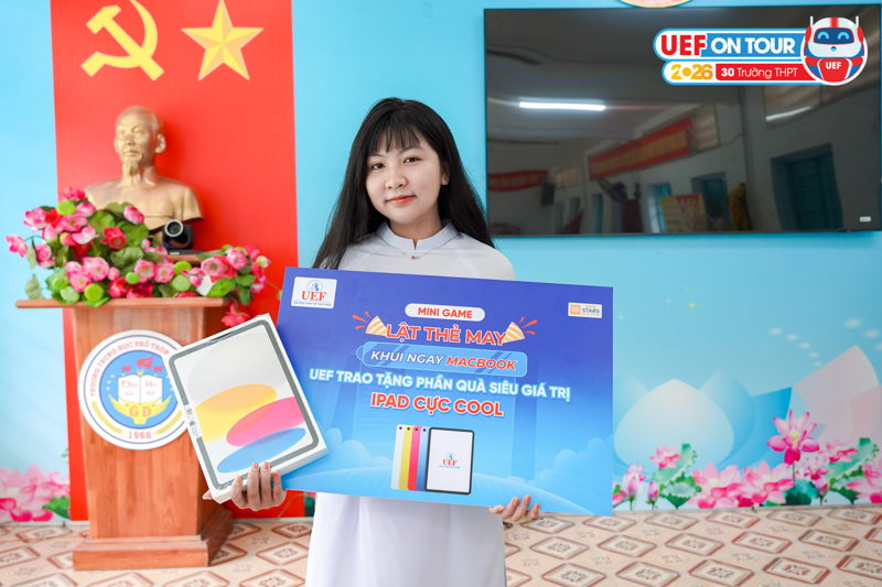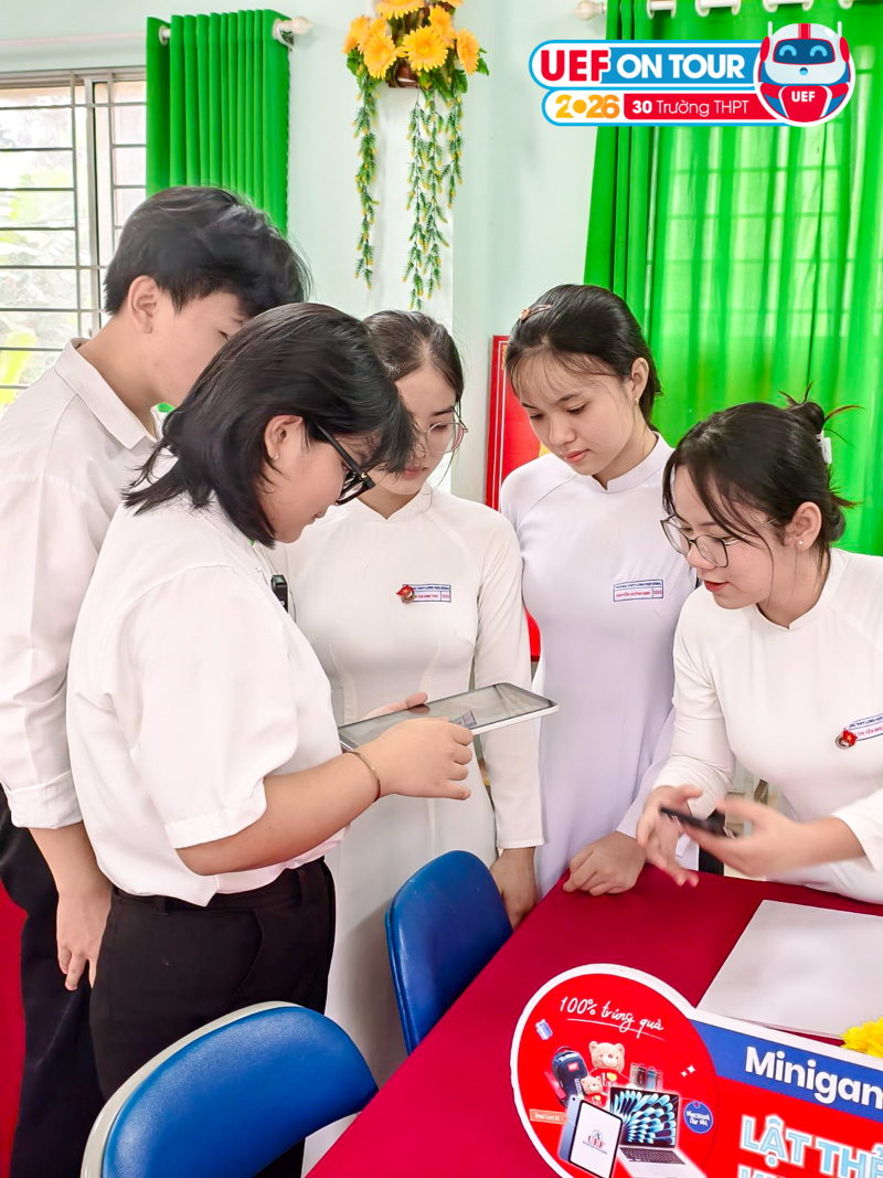 Đại diện Nhà trường cho biết, minigame trên MiniApp “UEF University” vẫn đang diễn ra với hàng loạt phần quà giá trị như iPad, MacBook Air,... Đây vừa là hoạt động giải trí và cũng là cách để học sinh tiếp cận thông tin hướng nghiệp một cách nhẹ nhàng, thú vị. Thông qua mỗi vòng chơi, các bạn có thêm động lực tìm hiểu ngành nghề, cơ hội học bổng và môi trường đại học phù hợp với năng lực của bản thân.