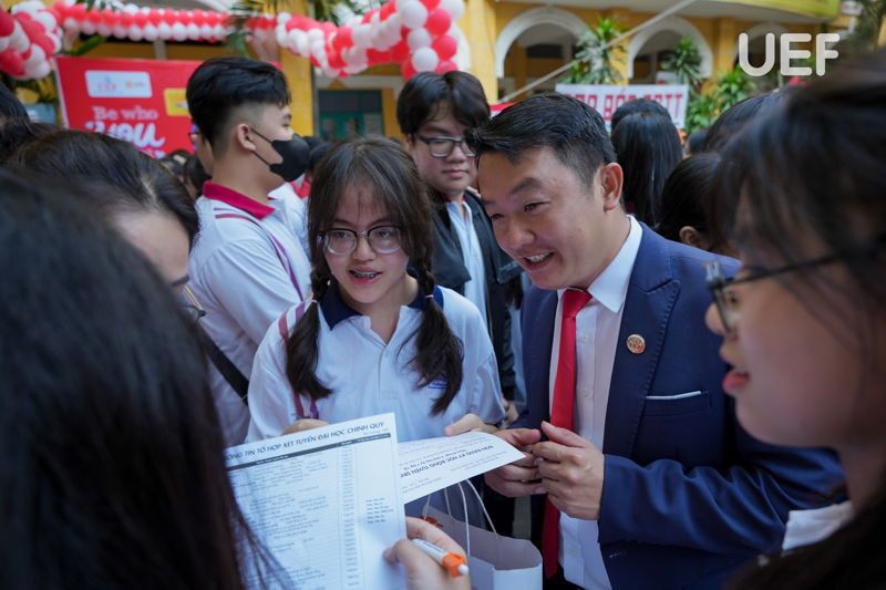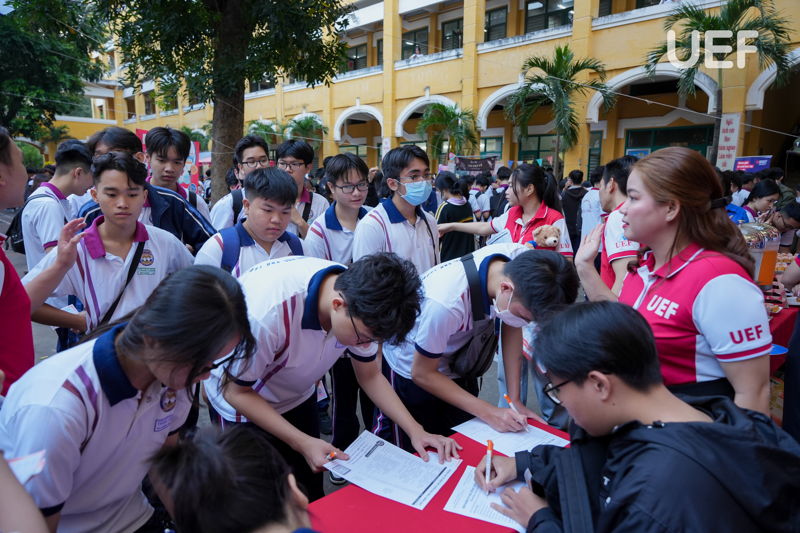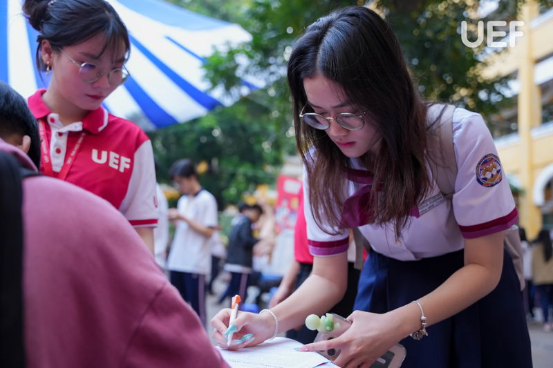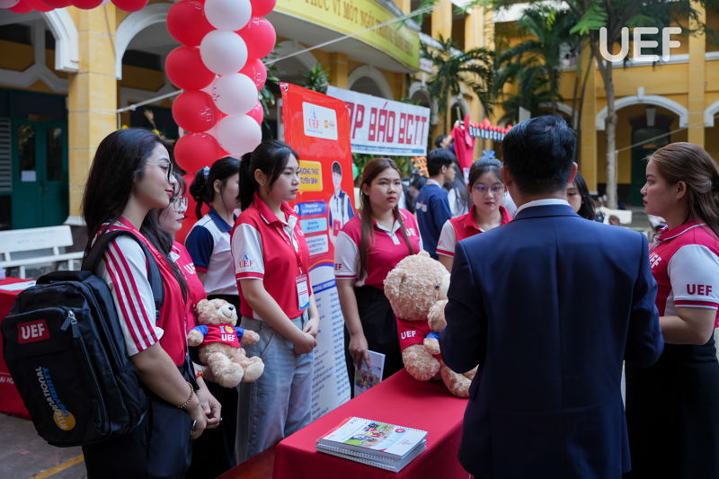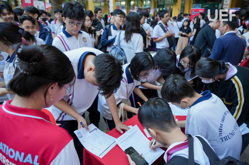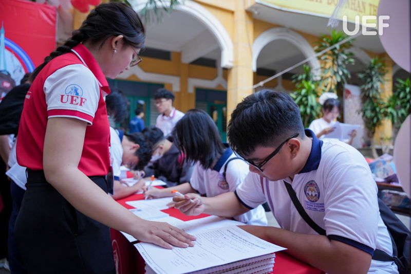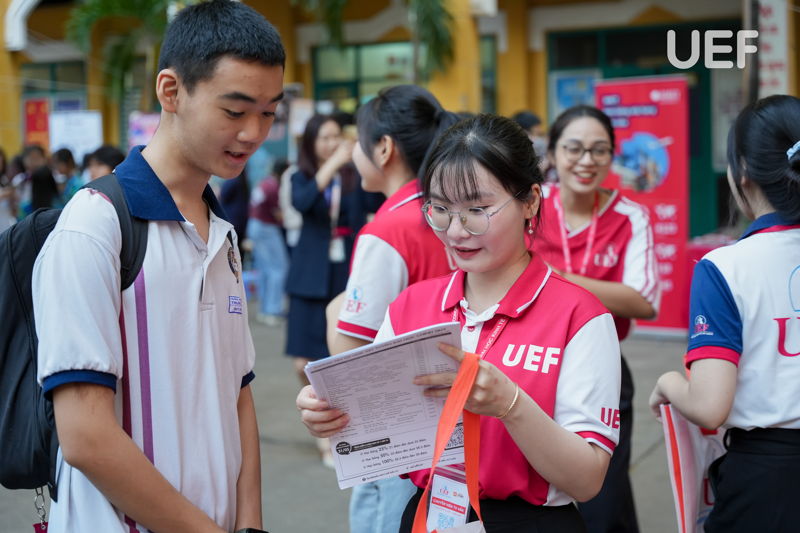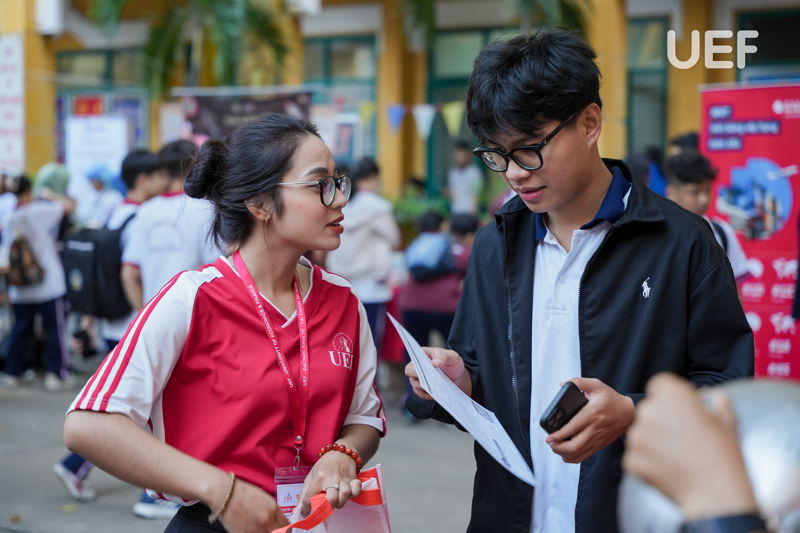 UEF đã cung cấp thông tin chi tiết về các ngành đào tạo, cơ hội nghề nghiệp và đặc biệt là việc xét học bổng sớm dành cho thí sinh trong năm 2025. Nhiều học sinh bày tỏ sự hào hứng khi được biết UEF triển khai chính sách này từ ngày 15/1 đến 31/5 với cơ hội nhận học bổng lên đến 100% học phí.