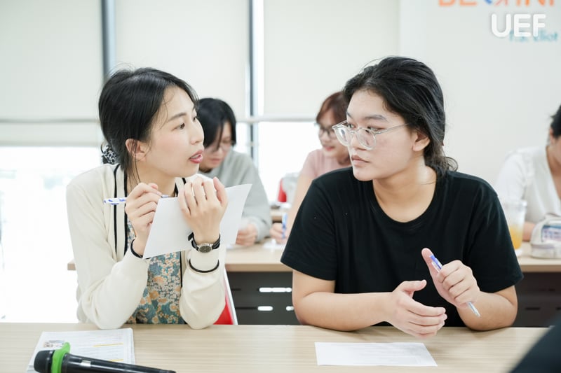 Song song đó, các lớp kỹ năng mềm cũng được triển khai giúp sinh viên rèn luyện các kỹ năng thiết yếu như giao tiếp, làm việc nhóm, thuyết trình sáng tạo, tư duy phản biện, làm chủ AI và công nghệ,... Đây đều là những yếu tố ngày càng trở nên quan trọng trong hành trình học tập và sự nghiệp sau này. Chính sự chuẩn bị toàn diện từ ngoại ngữ đến kỹ năng đã tạo nên một lợi thế cạnh tranh rõ rệt cho tân sinh viên UEF trên hành trình hội nhập quốc tế.