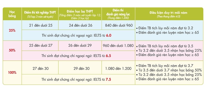 Chính sách học bổng dành cho thí sinh xét tuyển sớm đa dạng
