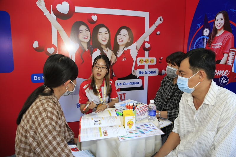 Nhiều phụ huynh đồng hành với con, em mình trong quá trình tìm hiểu thông tin