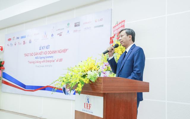 Tại buổi Lễ, Ông Phạm Đình Nguyên, Phó Chủ tịch Tập đoàn Unibrands đại diện các doanh nghiệp cảm ơn Nhà trường đã tạo cầu nối chia sẻ kiến thức, kỹ năng đến các em sinh viên, rút ngắn khoảng cách giữa đơn vị đào tạo và Nhà tuyển dụng. Ông khẳng định: “Sinh viên UEF rất may mắn khi có thể chủ động chọn lựa kênh kiến tập, thực tập cho bản thân, phát triển hiệu quả phần “hành” bên cạnh việc “học” thông qua chiến lược kết nối doanh nghiệp mà trường đã quan tâm xây dựng suốt thời gian qua”.