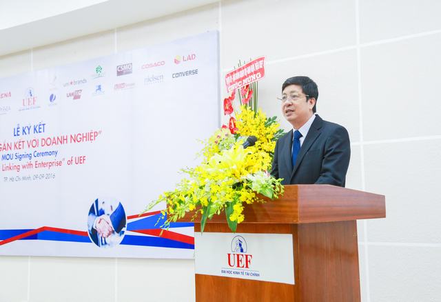 Ông Nguyễn Viết Dũng - Phó Vụ trưởng, Phó Giám đốc cơ quan đại diện Bộ Giáo dục và Đào tạo tại TP.HCM ghi nhận và chúc mừng những thành quả UEF đạt được trong thời gian qua