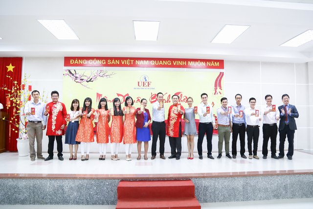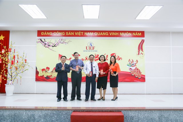 Theo phong tục truyền thống, tại buổi họp mặt, Lãnh đạo Nhà trường cũng đã trao những phong bao lì xì đầu năm mới cho tập thể Cán bộ – Giảng viên – Nhân viên như một lời chúc may mắn, thịnh vượng đến các thành viên trong “đại gia đình” UEF.