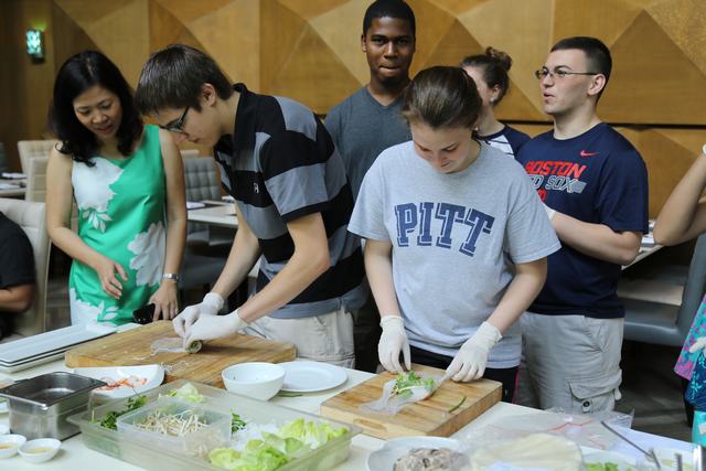 Sinh viên Đại học Pittsburgh cùng trải nghiệm tinh túy ẩm thực Việt trong một chương trình chế biến món ăn truyền thống tại Khách sạn New World.