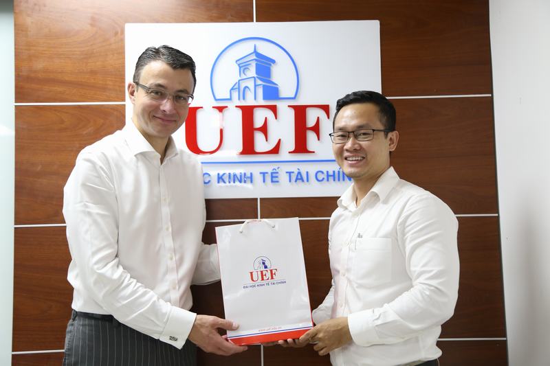 Đại diện đại học UPEC, GS. Yannick Goullec - Giám đốc chương trình Kinh doanh Quốc tế và các giảng viên đã đến tham quan trường và trực tiếp trao đổi hợp tác liên kết đào tạo. Đặc biệt, buổi gặp gỡ còn có sự hiện diện của ông Patrick Renault - Thành viên Hội đồng cố vấn thương mại quốc gia Pháp, Chủ tịch Hội đồng cố vấn chương trình đào tạo Kinh doanh UPEC-UEF.