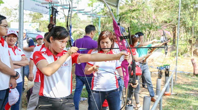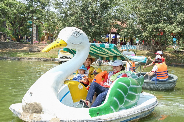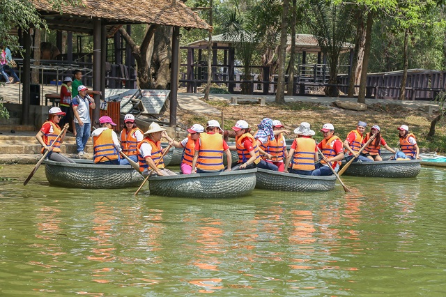 Tại đây, ngoài các hoạt động tham quan giải trí, các thành viên trong đoàn còn hòa mình vào các trò chơi vận động thú vị như: đánh trận giả thông qua trò chơi bắn súng sơn, trượt cỏ ghép logo, chèo thuyền thúng, một ngày làm Hugo cưỡi Đà điểu cùng các trò chơi sôi nổi do Ban tổ chức khởi xướng...