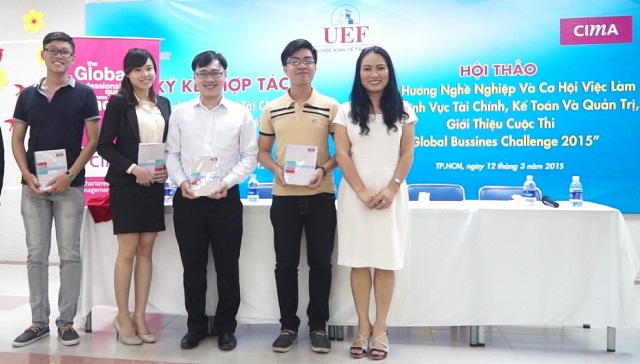 Tại Hội thảo, Bà Hoàng Thị Thái Hà - Giám đốc khu vực Đông Dương, FTMS Global group đã làm rõ tầm quan trọng của nhóm công việc liên quan đến kế toán, quản trị trong doanh nghiệp đồng thời giới thiệu đến toàn thể sinh viên UEF cuộc thi “Global Bussines Challenge 2015”. Đây là cuộc thi do Hiệp hội Kế toán Quản trị Công chứng Anh CIMA và Ngân hàng Barclays tổ chức hàng năm. Cuộc thi góp phần tạo sân chơi cho sinh viên trên toàn thế giới thử sức và chứng tỏ năng lực trở thành lãnh đạo doanh nghiệp trong tương lai.