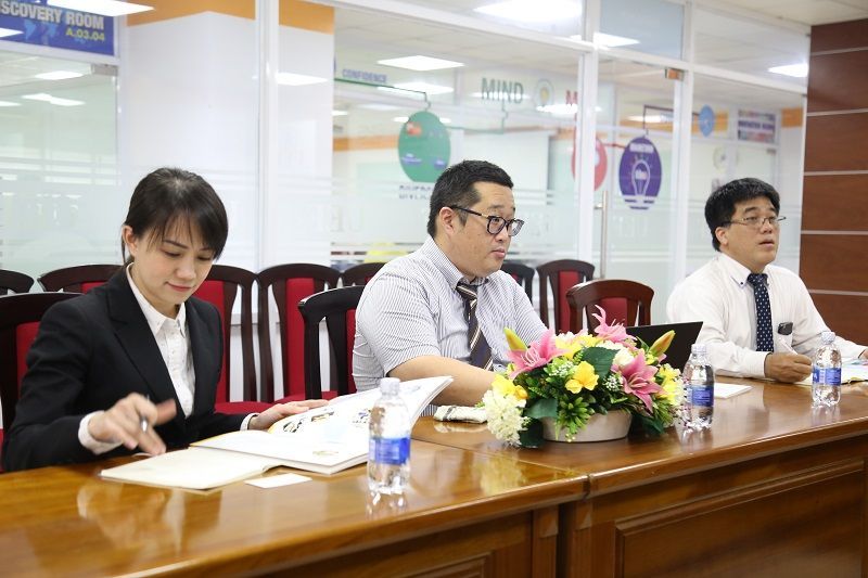 Buổi làm việc có sự hiện diện của ông Ise Akihiro – CEO Học viện Ngoại ngữ Manabi, Ông Uechi Masashige – Điều phối viên của học viện tại Việt Nam, lãnh đạo và giảng viên Khoa Ngoại ngữ và Văn hóa quốc tế UEF.