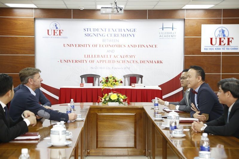 Nhằm tạo cơ hội giao lưu, học tập quốc tế, mang đến trải nghiệm văn hóa đa quốc gia cho sinh viên, trường Trường Đại học Kinh tế - Tài chính thành phố Hồ Chí Minh (UEF) không ngừng mở rộng cầu nối hợp tác với các trường đại học uy tín trên thế giới. Sáng ngày 8/1, UEF đã tiếp tục ký kết hợp tác đào tạo cùng Học viện Lillebaelt - Đại học Khoa học ứng dụng Đan Mạch, nối dài mạng lưới đối tác của trường tại khu vực Bắc Âu.