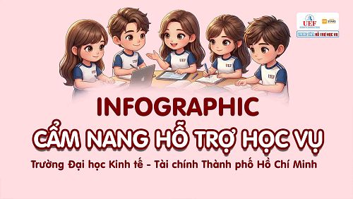 Infographic tổng hợp các nội dung học vụ thiết yếu như: Thông tin học vụ, thông tin liên hệ các phòng ban/đơn vị liên quan, các quy trình - thủ tục thường gặp, hướng...