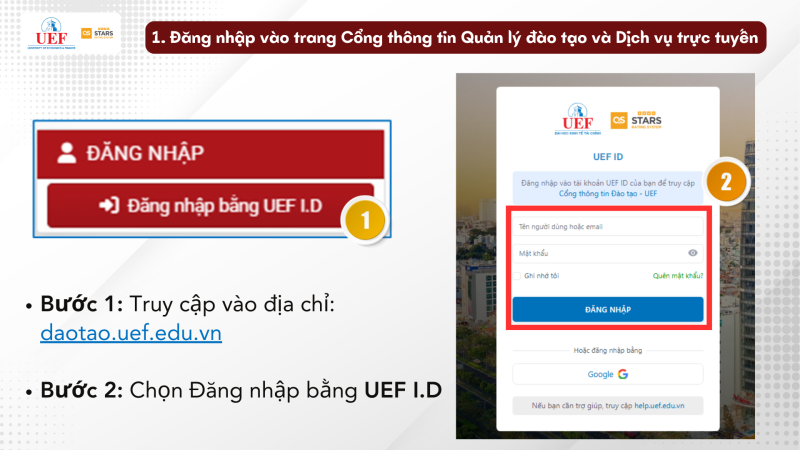 1. ĐĂNG NHẬP VÀO CỔNG THÔNG TIN QUẢN LÝ ĐÀO TẠO VÀ DỊCH VỤ TRỰC TUYẾN daotao.uef.edu.vn - bằng tài khoản UEF ID.