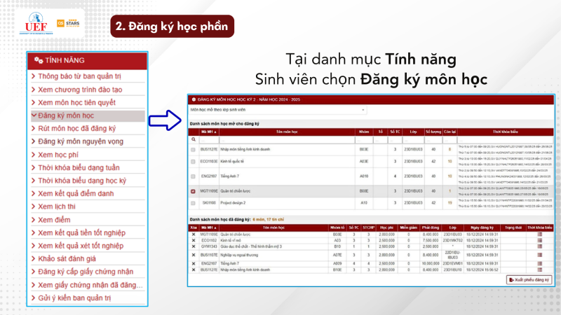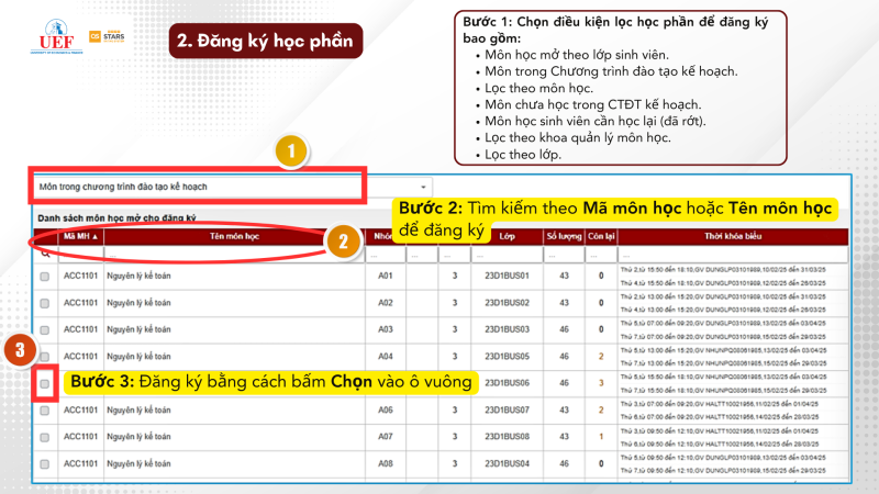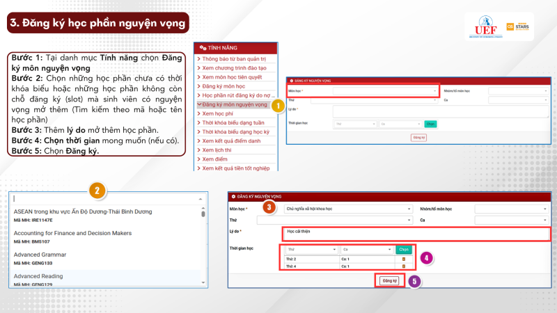 3. THỰC HIỆN CÁC THAO TÁC ĐĂNG KÝ HỌC PHẦN.