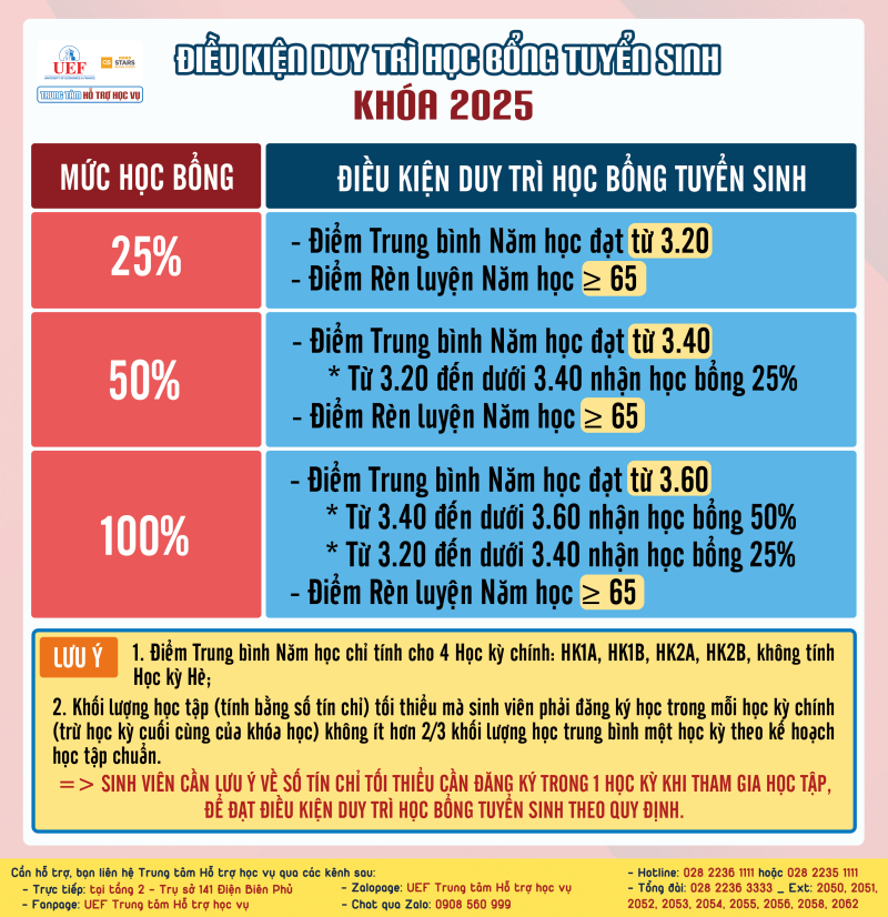 Điều kiện duy trì Học bổng Tuyển sinh - Đối với Sinh viên Khóa 2025